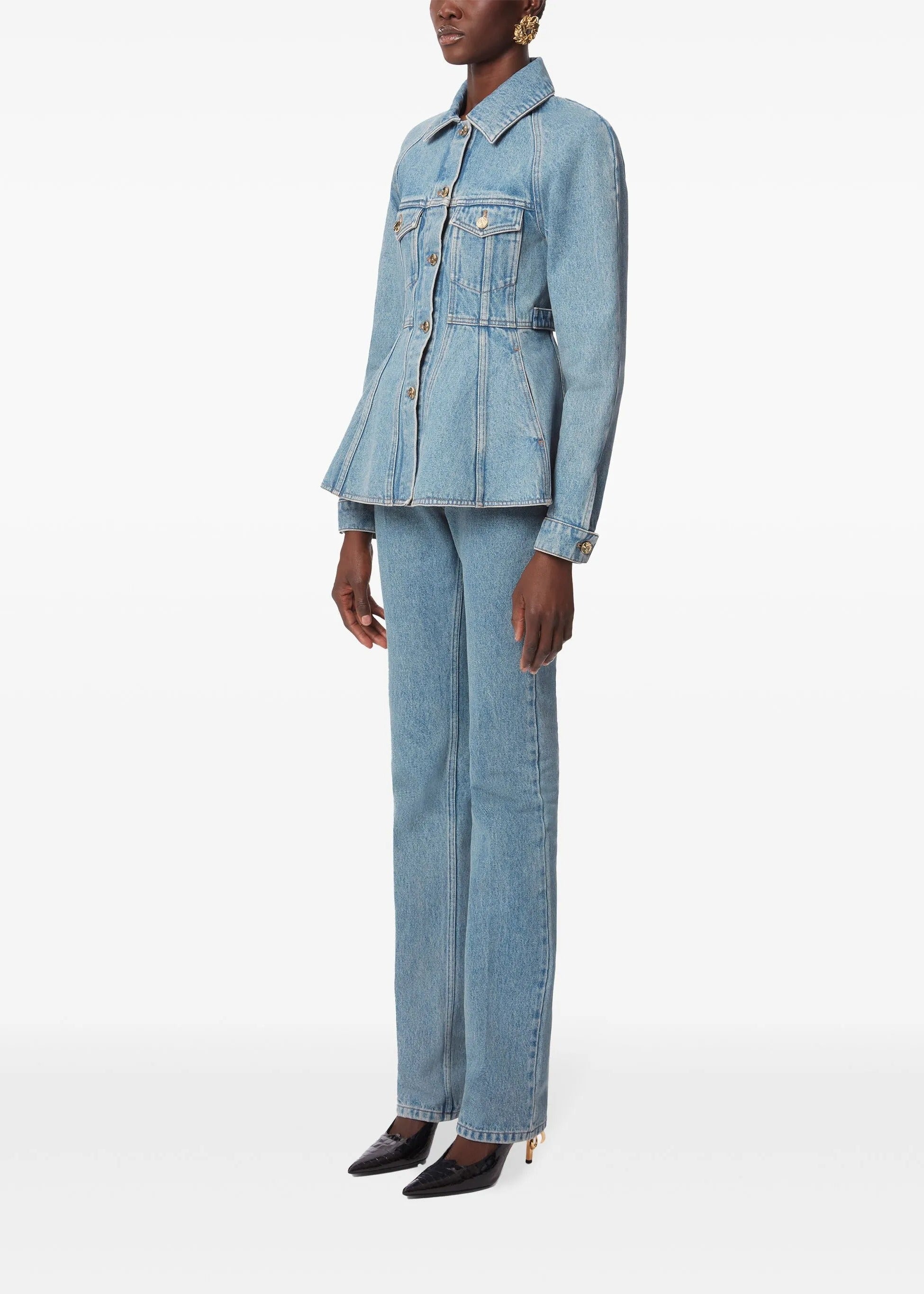 ペプラム デニム ジャケット