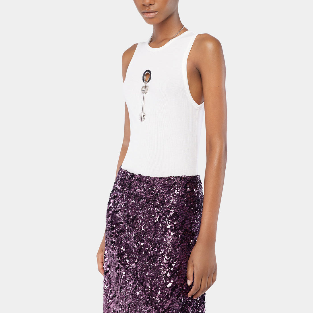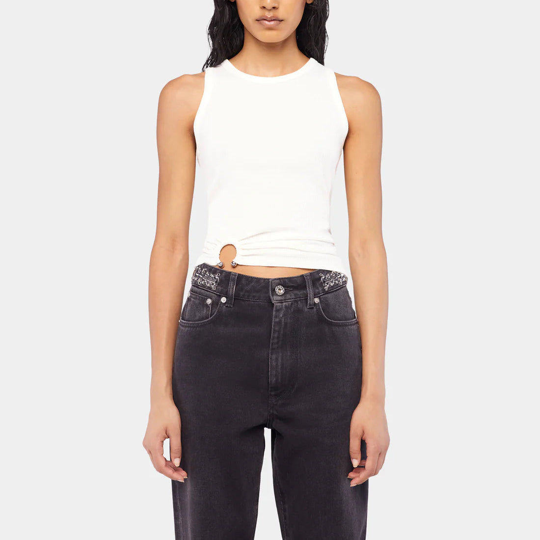 White tank top with signature piercing