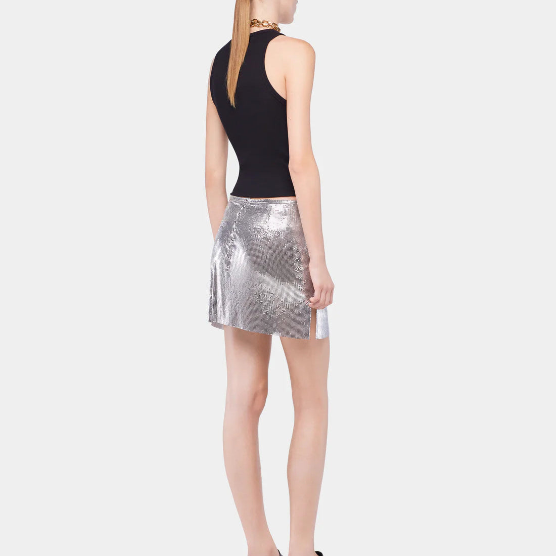 RabanneBlack tank top with signature piercing