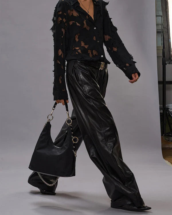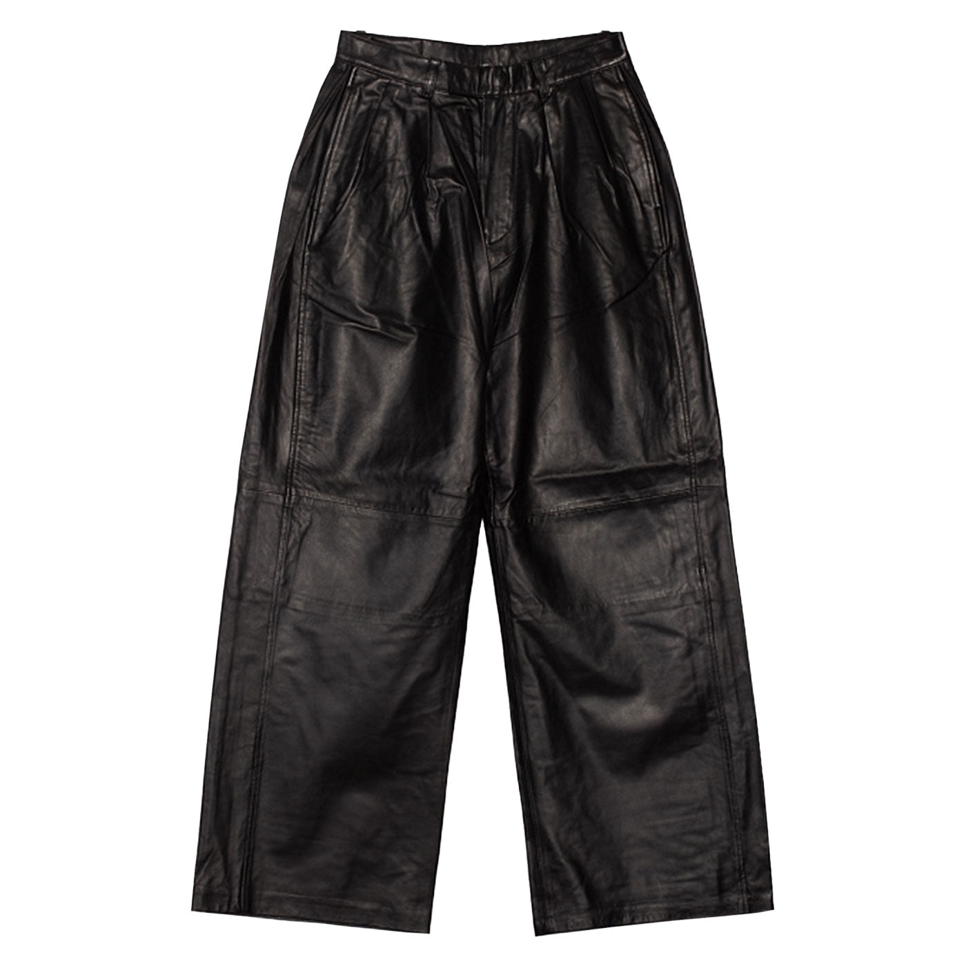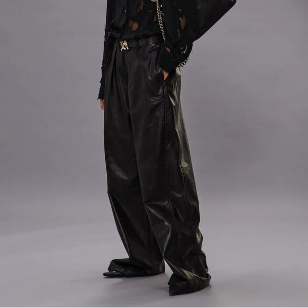 PLEATED WIDE LEG LEATHER PANT