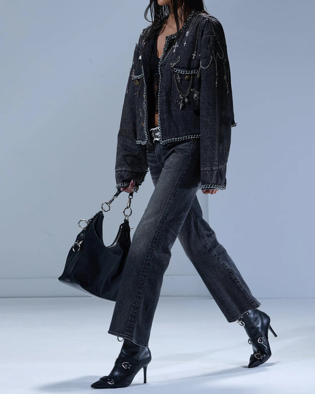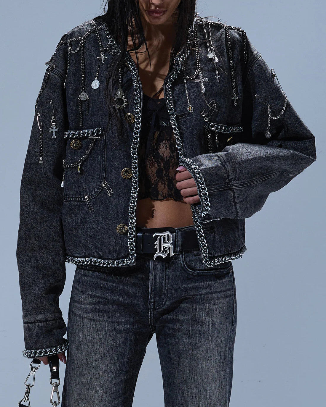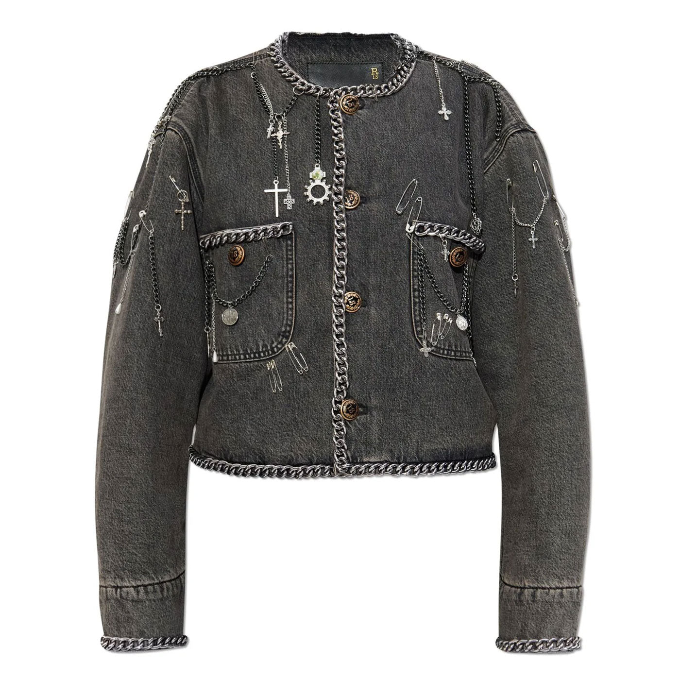 R13CHAIN EMBELLISHED CROPPED CHORE JACKET
