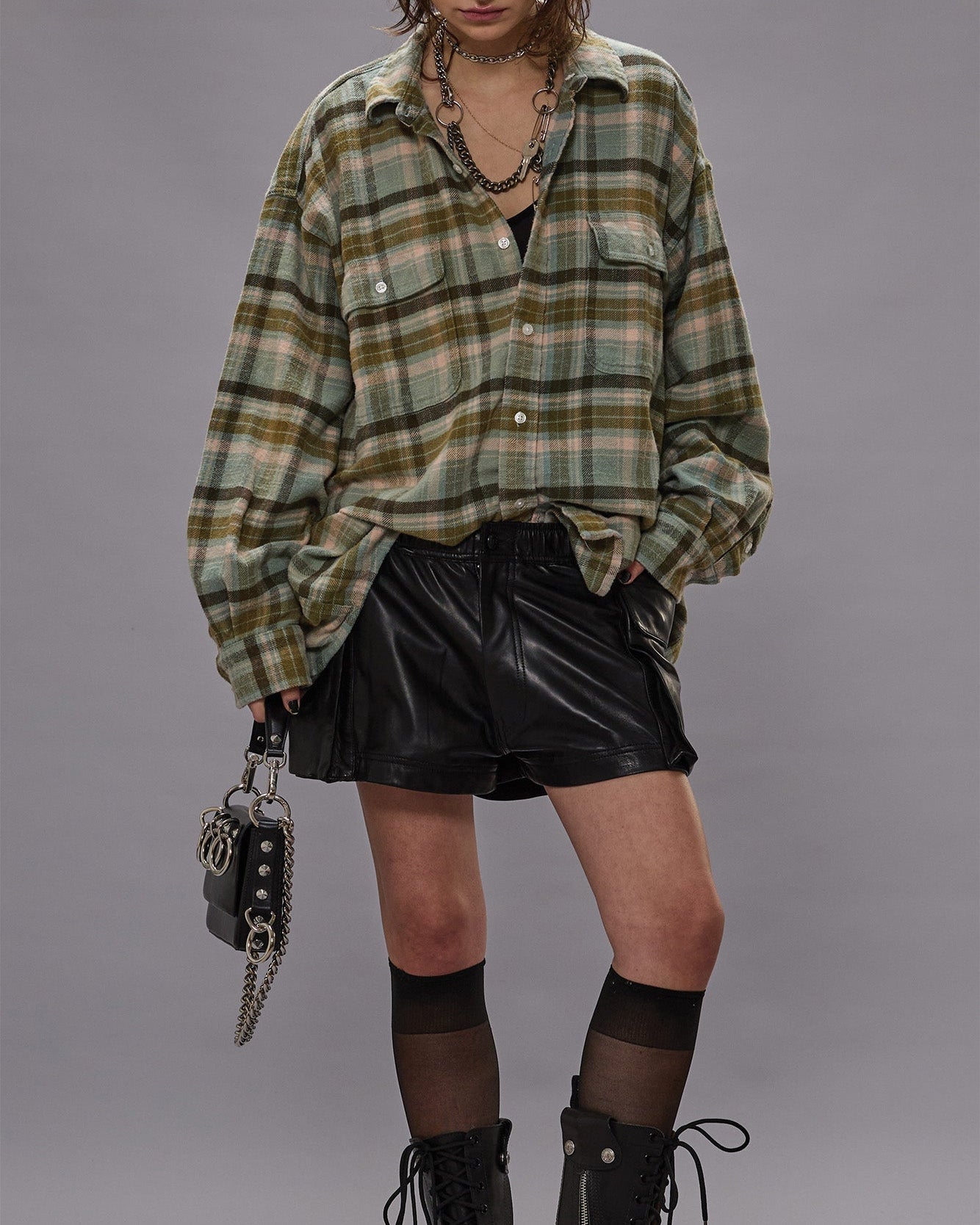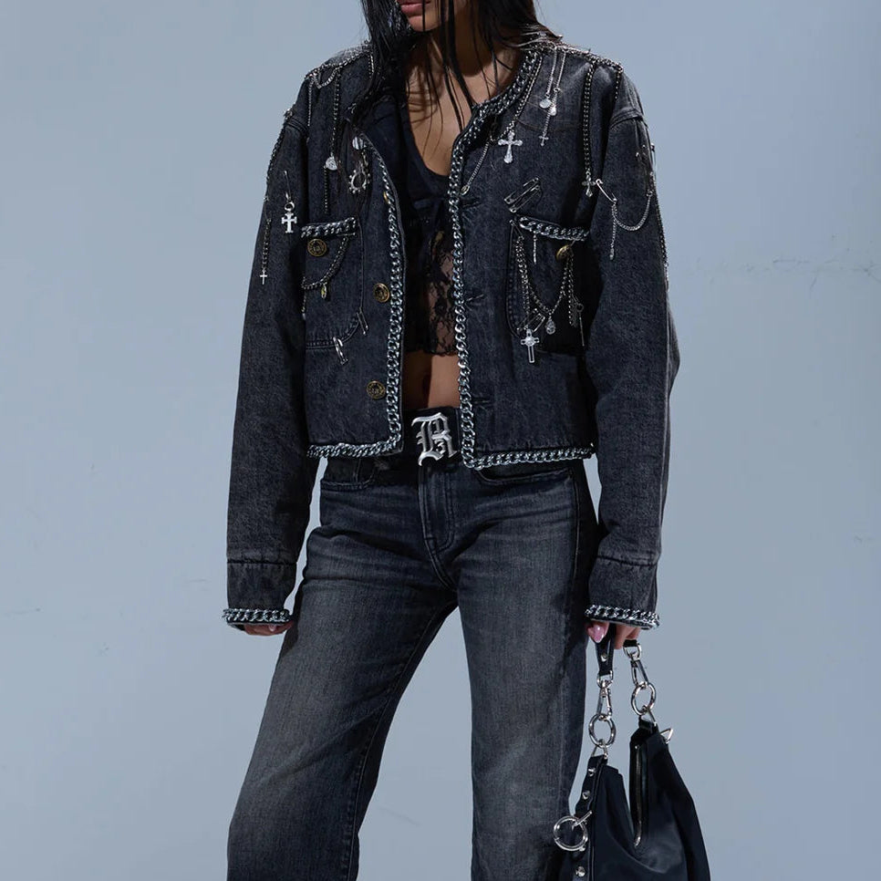 CHAIN EMBELLISHED CROPPED CHORE JACKET